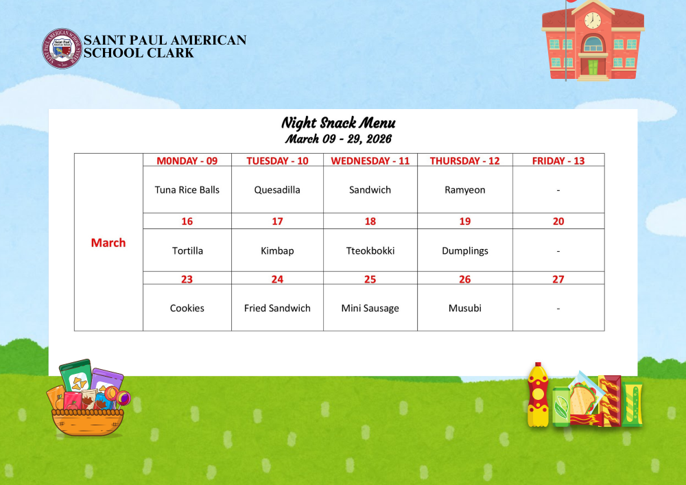 Night Snack Menu March 09 - 29, 2026