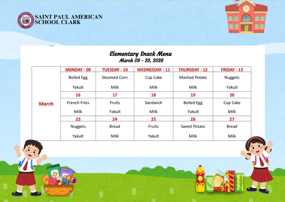 Elementary Snack Menu March 09 - 29, 2026