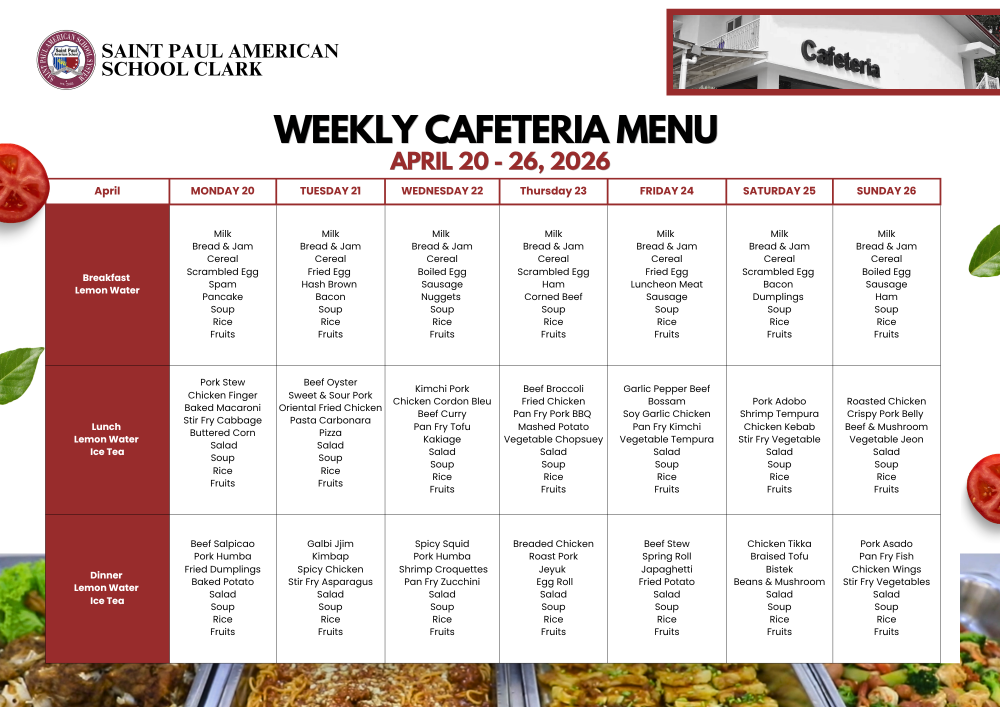 Cafeteria Menu April 20 - 26, 2026