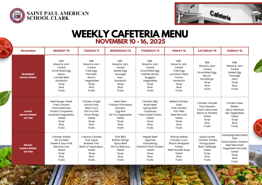 Cafeteria Menu November 10 - 16, 2025