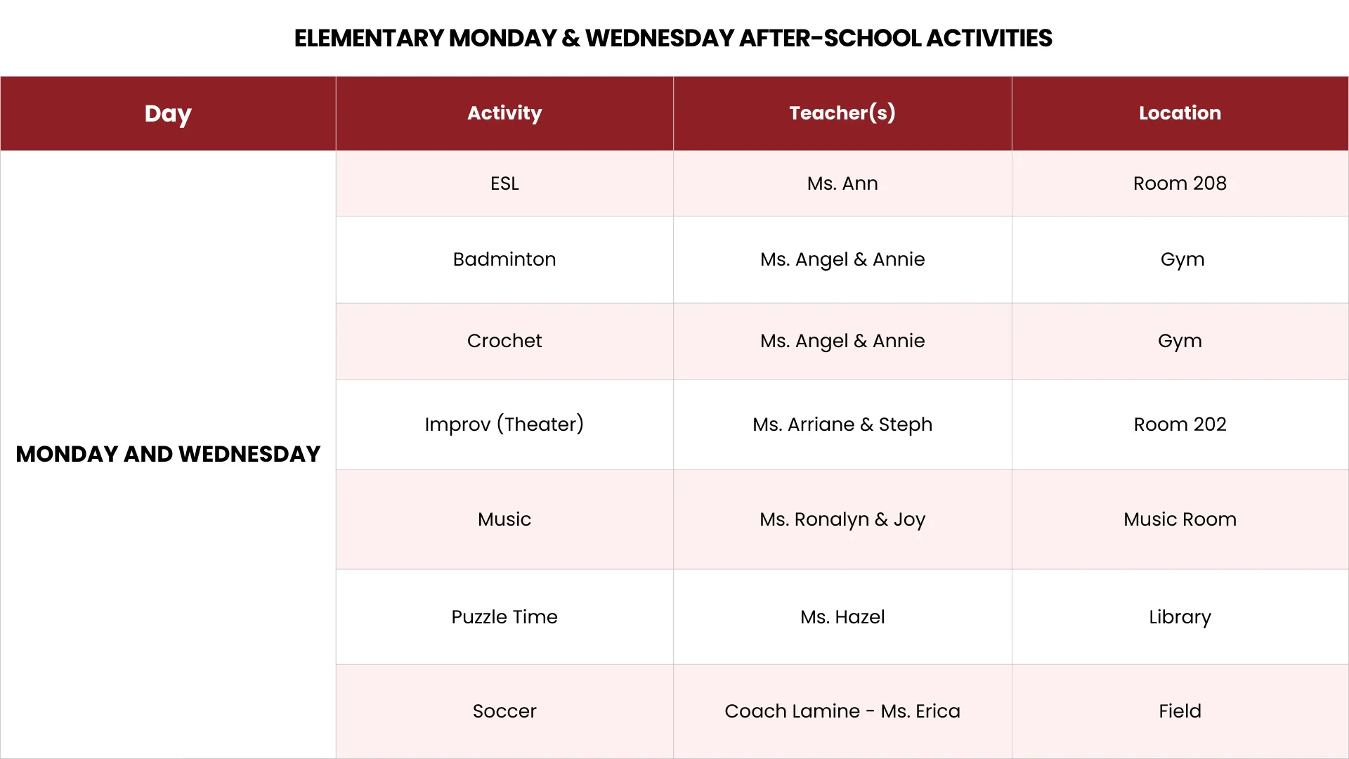 The Elementary Sports Club gives students the chance to learn and enjoy a variety of sports in a fun and inclusive environment. The program focuses on teamwork, sportsmanship, coordination, and fundamental motor skills. Students will rotate through popular sports like basketball, soccer, volleyball, and relay games-while developing fitness, discipline, and a love for healthy competition.